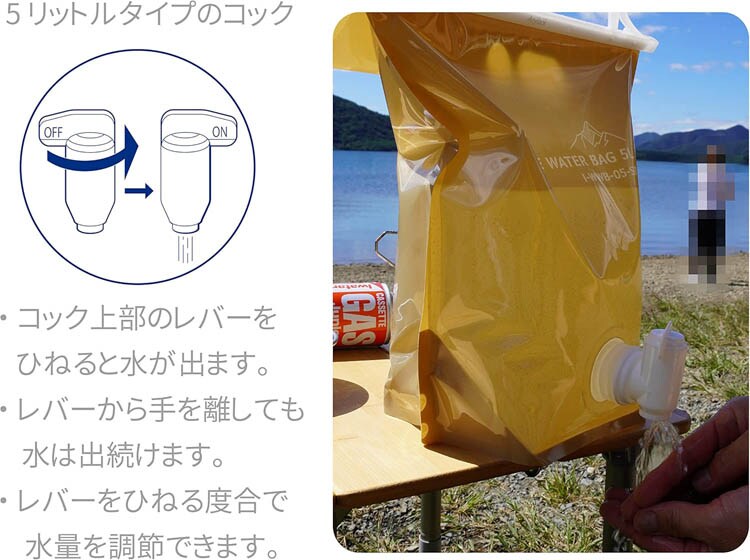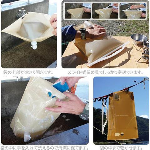 ●フィルム製の折りたたみできる容量5Lのウォータージャグ。