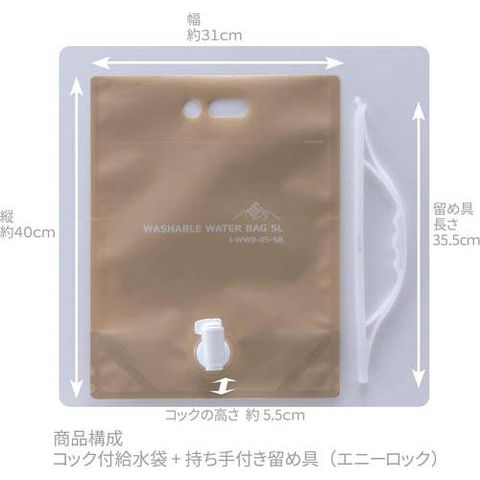 【岩谷マテリアル ウォッシャブル ウォーターバッグ 5L サンドベージュ WWB-5SBの商品詳細】