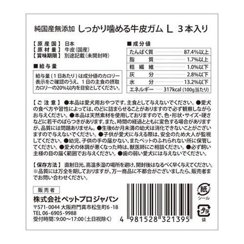 HappyDays 純国産無添加 しっかり噛める牛皮ガム L (3本)