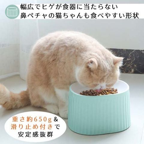 ●広口で浅いペットボウルで、猫ちゃんのおひげにあたりづらいので快適にごはんを食べられます。