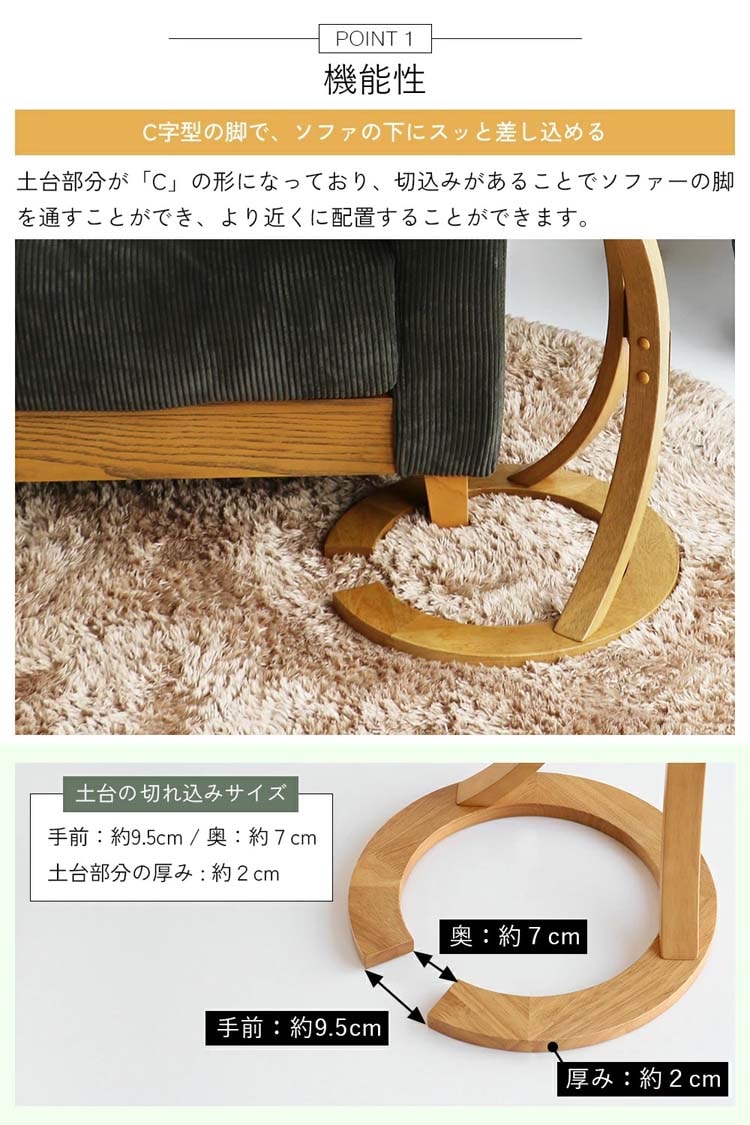 ●C字型の脚で、ソファの下にスッと差し込めるテーブル。