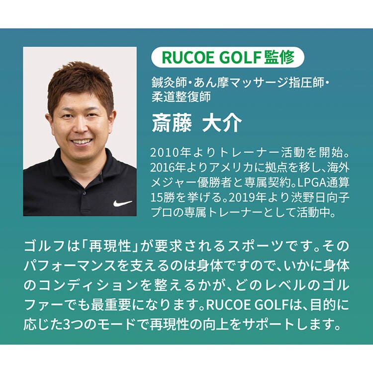 ●ゴルフ競技において要求される「再現性」をサポートするコンディショニングギアです。