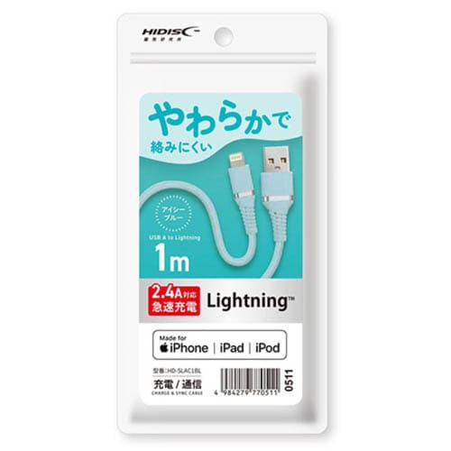 HIDISC やわらかケーブル USB-A to Lightning アイシーブルー HD-SLAC1BL (1個入)