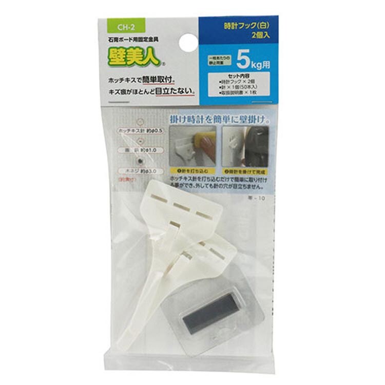 壁美人 石膏ボード用固定金具 時計用フック 白 CH-2 5kg用 (2個入)