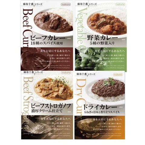 | ビーフストロガノフ:190g×1個、ビーフカレー:200g×1個、野菜カレー:220g×1個、ドライカレー:160g×1個 |