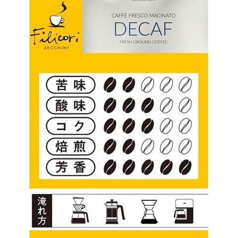 【フィリコーリ・ゼッキーニ コーヒー 粉 デカフェ 爽やかなアロマと芳醇な味わいの商品詳細】