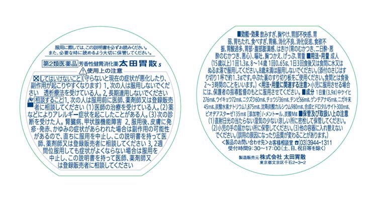 ●太田胃散Sは、自然由来の健胃生薬に制酸剤と消化酵素をバランスよく配合した、粉末タイプ(散剤)の胃腸薬です。