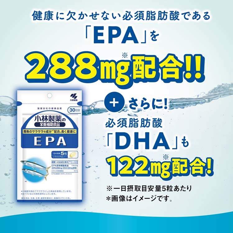 ●小林製薬の「EPA」サプリメントは、魚油由来の必須脂肪酸EPAを手軽に摂取できるEPA(+DHA) サプリメントです。