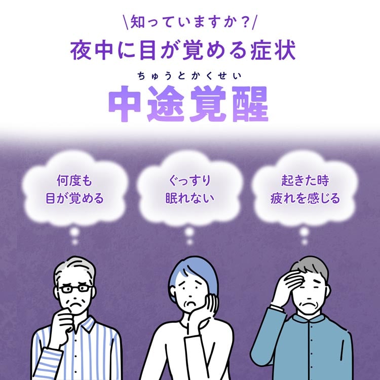 ●クロセチンが加齢などとともに気になる中途覚醒を減らすことをサポートします。