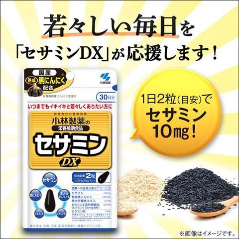 ●小林製薬の「セサミンDX」は、セサミン10mgと黒にんにく100mgを配合。