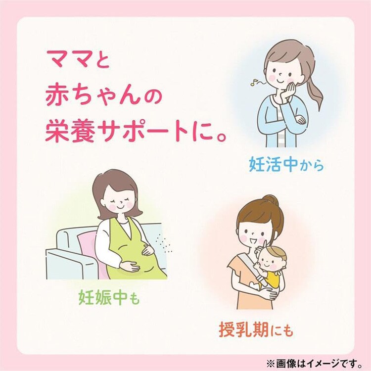 ●妊娠を計画中の方や妊娠中、授乳期の女性におすすめの栄養補助設計で、葉酸をはじめ、鉄分やカルシウム、ビタミンB群など、女性に大切な栄養素を1日3粒(目安)で摂取できます。