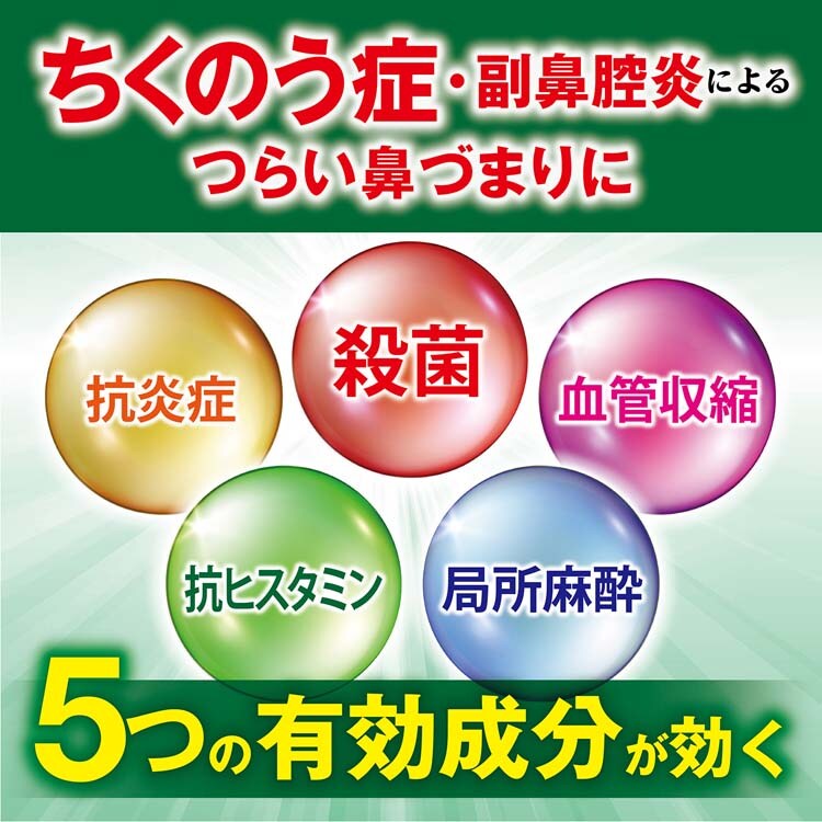 ●ちくのうを伴う副鼻腔炎による鼻づまりを緩和する点鼻スプレーです ●つらい鼻づまりを素早く鎮めます ●殺菌成分配合です