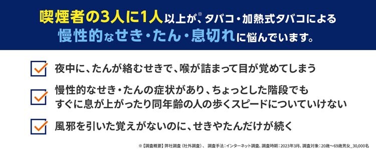 ●タバコや排気ガスなどで、せき、たんが続く方のお薬です