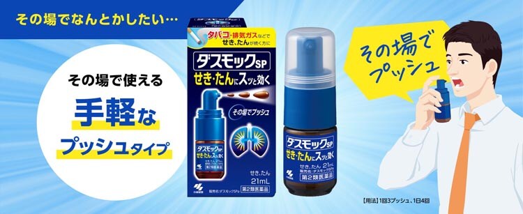 ●手軽に使えるプッシュタイプの液体のお薬なので、せきやたんが気になるその場で使えます