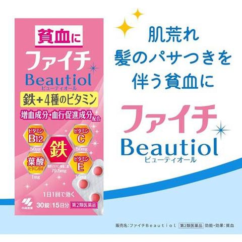 | 1日量(2錠)中 溶性ピロリン酸第二鉄:79.5mg アスコルビン酸(ビタミンC):50.0mg 酢酸d-α-トコフェロール(ビタミンE):10.0mg シアノコバラミン(ビタミンB12):50μg 葉酸:1.0mg 添加物として、トウモロコシデンプン、二酸化ケイ素、ラウリン酸ソルビタン、ゼラチン、白糖、タルク、グリセリン脂肪酸エステル、セルロース、D-マンニトール、ヒドロキシプロピルセルロース、クロスカルメロースNa、ステアリン酸Mg、ヒプロメロースフタル酸エステル、ヒプロメロース、マクロゴール、赤色102号、黄色5号を含有する ・成分・分量に関連する注意 ・尿及び便の検査値に影響を与えることがあります。医師の治療を受ける場合は、ビタミンCを含有する製剤を服用していることを医師に知らせてください ・配合されている溶性ピロリン酸第二鉄により、便が黒くなることがあります |