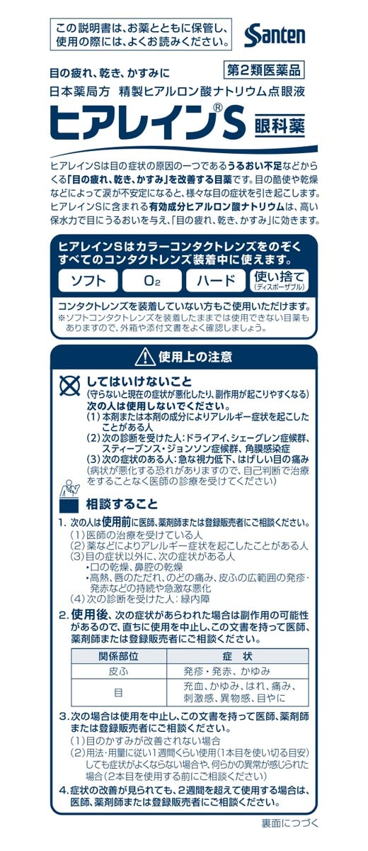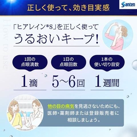 ●ヒアレインSは目の症状の原因の一つであるうるおい不足などからくる「目の疲れ、乾き、かすみ」を改善する目薬です。