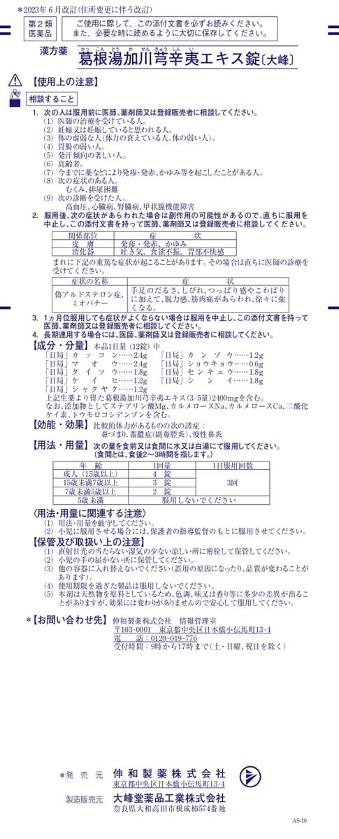 【販売名】葛根湯加川キュウ辛夷エキス錠[大峰]