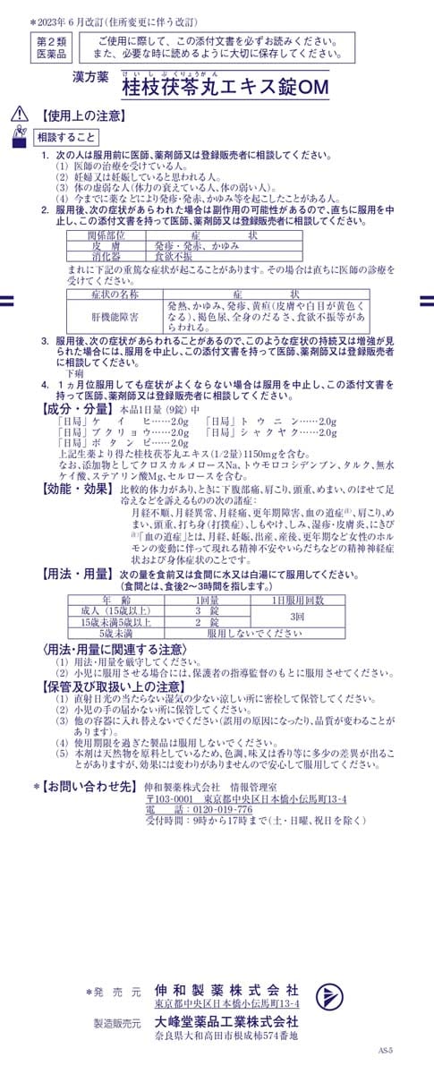 【販売名】桂枝茯苓丸エキス錠OM