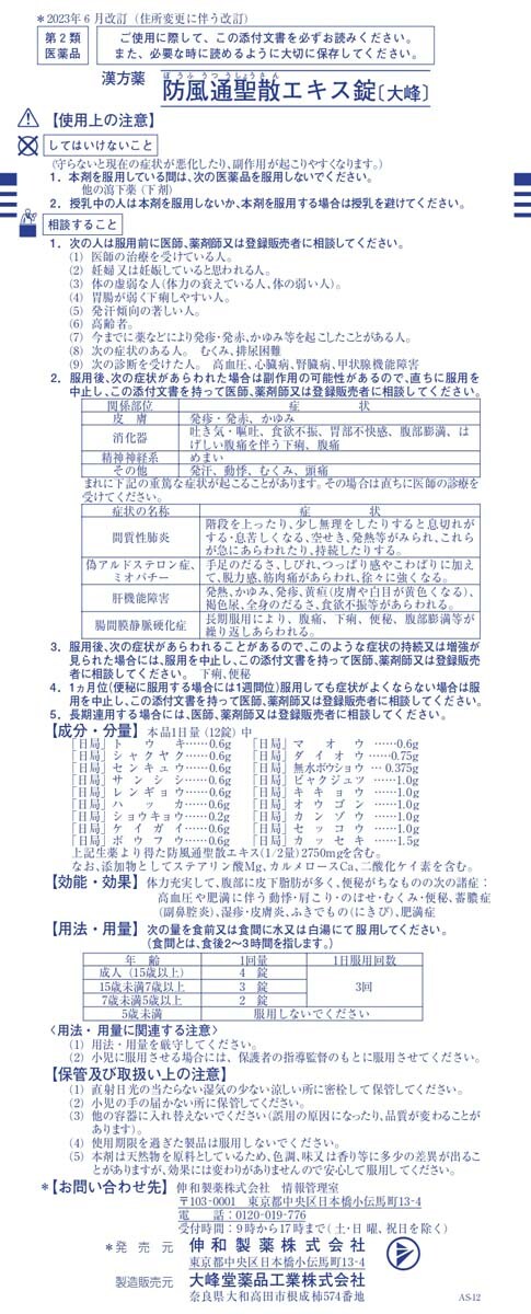【販売名】防風通聖散エキス錠[大峰]