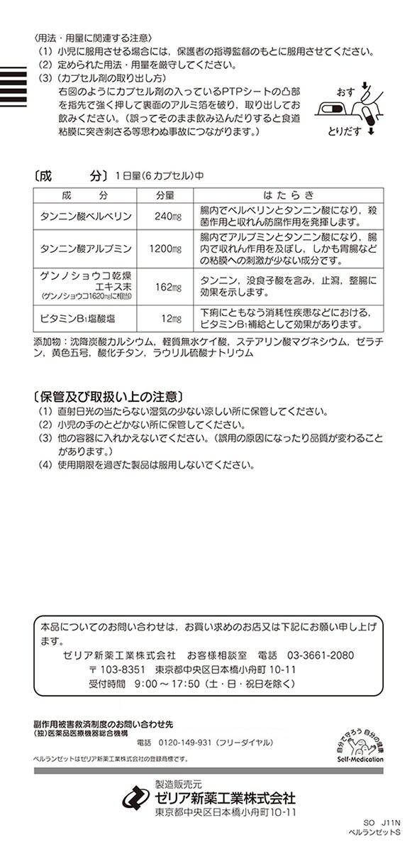 ●ベルランゼットSは、暴飲暴食による消化不良や寝冷え、食あたり、水あたりなど、様々な原因によって起こる下痢に対して、優れた殺菌作用と収れん作用で幅広く効果を発揮する止瀉剤です。