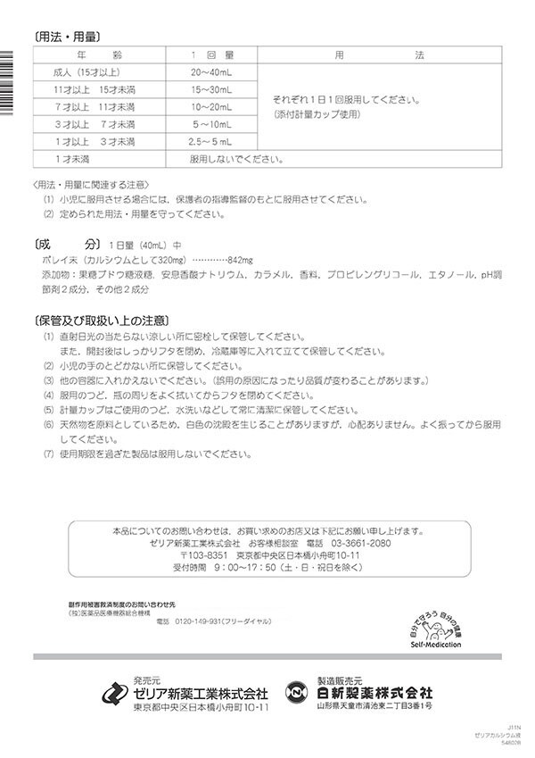 【ゼリア カルシウム液の商品詳細】