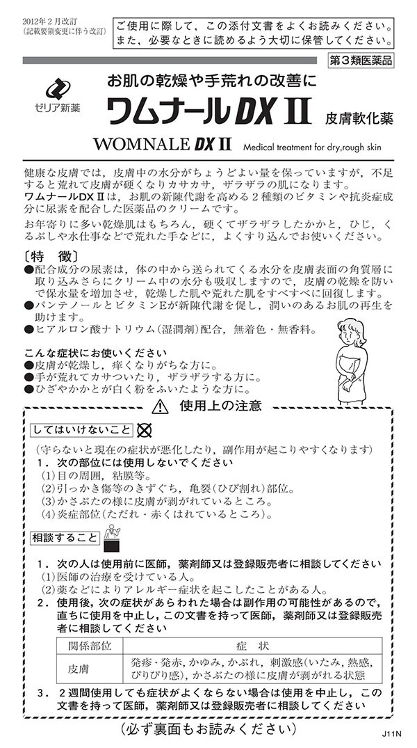 ●ワムナールDXIIは、尿素20%に、肌の新陳代謝を高めるビタミンEや抗炎症成分を配合、さらに添加物として保湿成分であるヒアルロン酸を加えた医薬品のクリーム剤です。