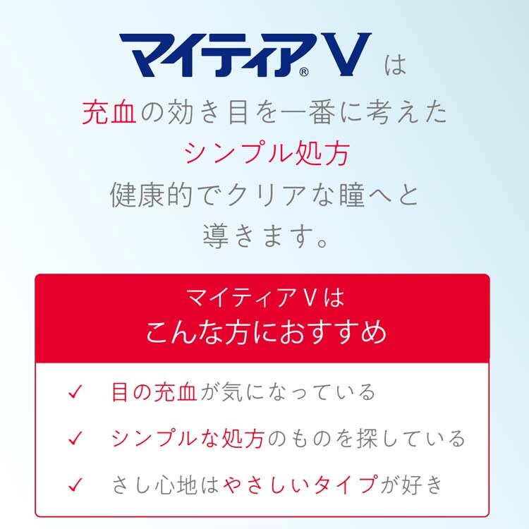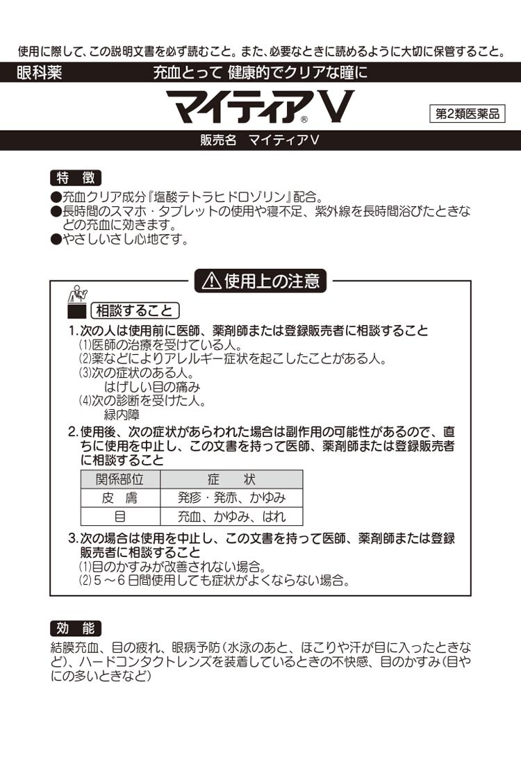 | 結膜充血、目の疲れ、眼病予防(水泳のあと、ほこりや汗が目に入ったときなど)、ハードコンタクトレンズを装着しているときの不快感、目のかすみ(目やにの多いときなど) |