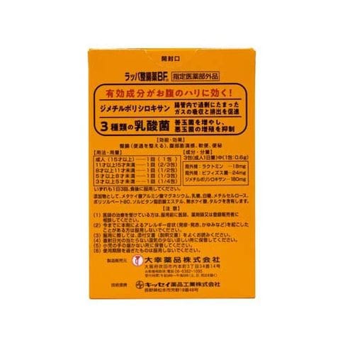 ・ラッパ整腸薬BFは、少し甘みのある、のみやすい白色細粒です。3才以上のお子様からお年寄りの方まで安心して服用いただけます。