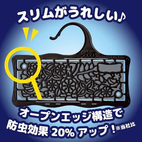 (2)オープンエッジ構造により薬剤の拡散力に優れ、防虫効果が20%アップ(メーカー比)。