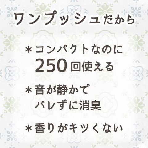 ●1プッシュでトイレ空間全体に消臭成分がすばやく広がります。