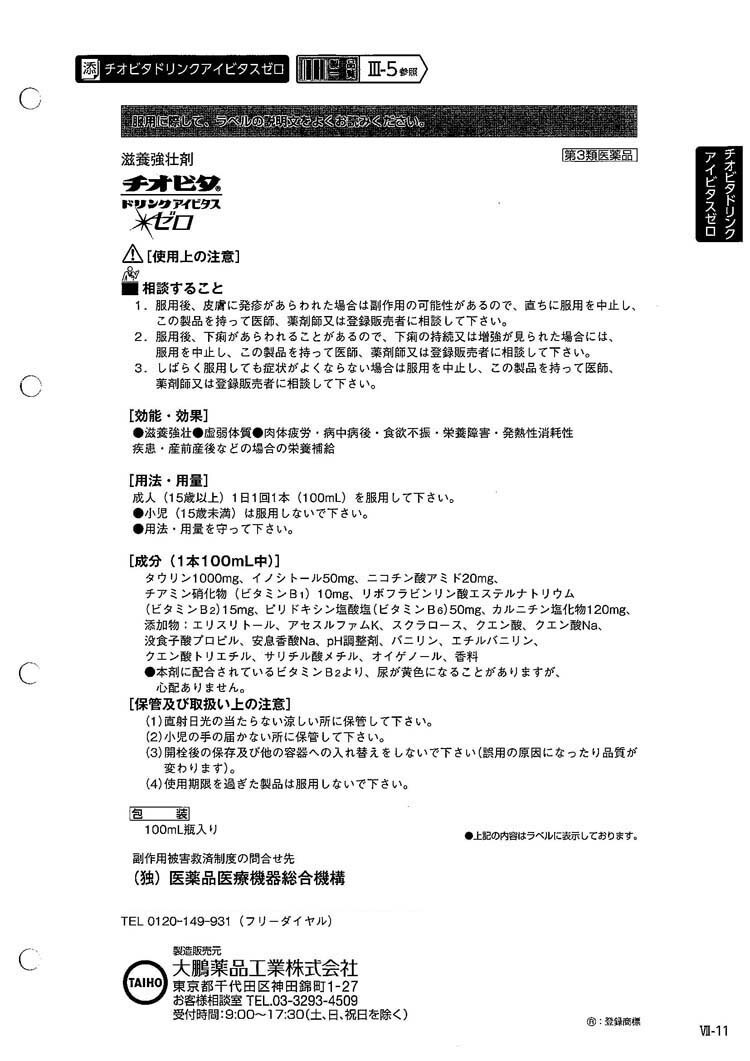 【チオビタドリンク アイビタスゼロの商品詳細】