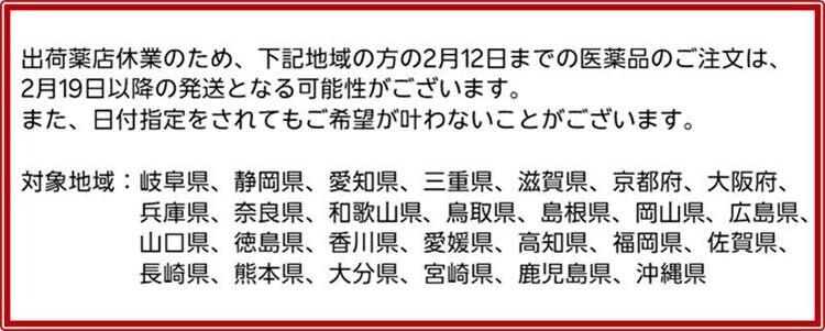 2.医薬品の同一商品のご注文は、数量制限をさせていただいております。ご注文いただいた数量が、当社規定の制限を越えた場合には、薬剤師、登録販売者からご使用状況確認の連絡をさせていただきます。予めご了承ください。