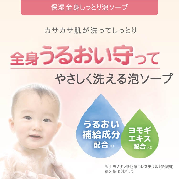 ●うるおい補給成分ラノリン脂肪酸コレステリル(保湿剤)配合。洗うだけでしっとりうるおい、サッと流れるしっとり泡です。