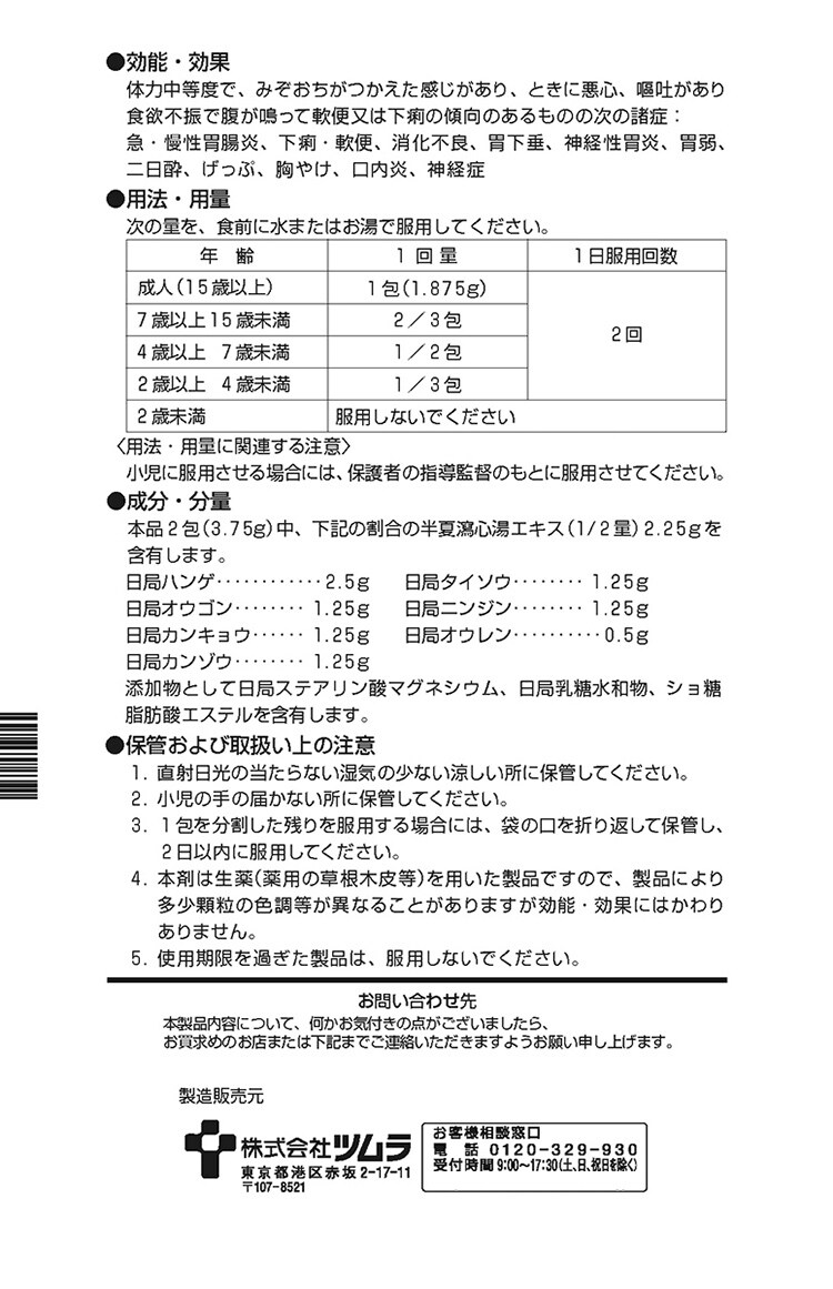 【ツムラ漢方 半夏瀉心湯エキス顆粒の商品詳細】