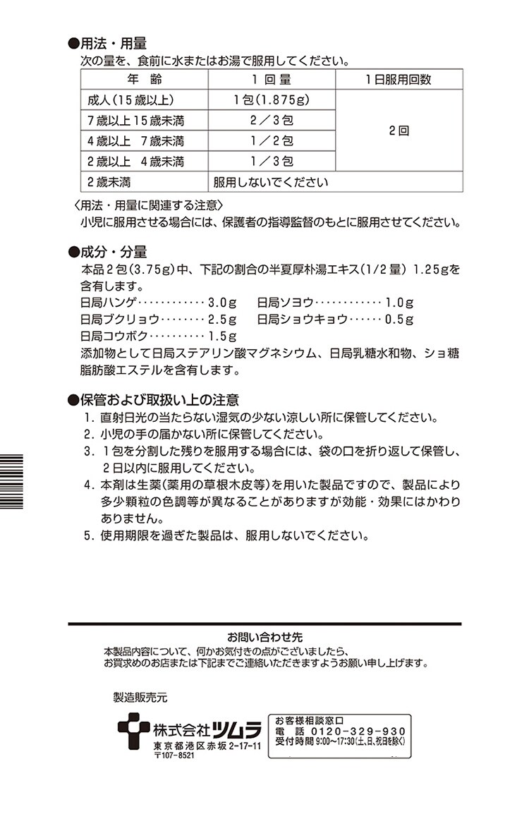 【ツムラ漢方 半夏厚朴湯エキス顆粒の商品詳細】