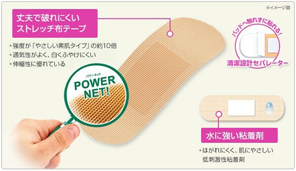 独自に開発した低刺激性粘着剤を使用。肌へのやさしさとはがれにくさを実現しました。