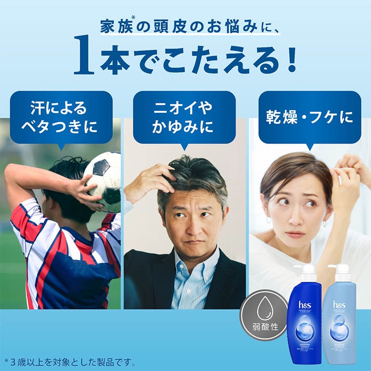 ●地肌の乾燥・かゆみ・フケとパサつく髪に。余分な皮脂や汚れを取り除くだけでなく、h&sの深海ミネラル*が、毛穴の奥まで浸透。(*深海にも含まれるミネラルと同成分配合)