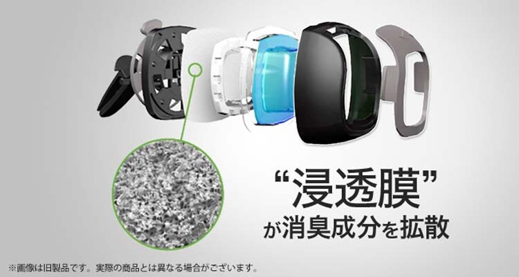 (2)セット方法香りを確認して、クリップをエアコン送風口に取り付ける。※エアコンのルーパーが厚い場合、無理にはめ込まない