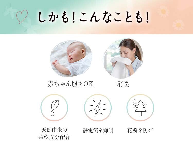 | 界面活性剤(エステル型ジアルキルアンモニウム塩)、安定化剤、繊維ケア補助剤、香料 |