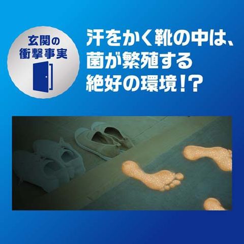 ※1 使用状況による。たたきエリアを除く一般的な玄関の床、マット、スリッパを抗菌します。特定の菌・条件下で試験。全ての菌に同様の効果が得られるものではありません。