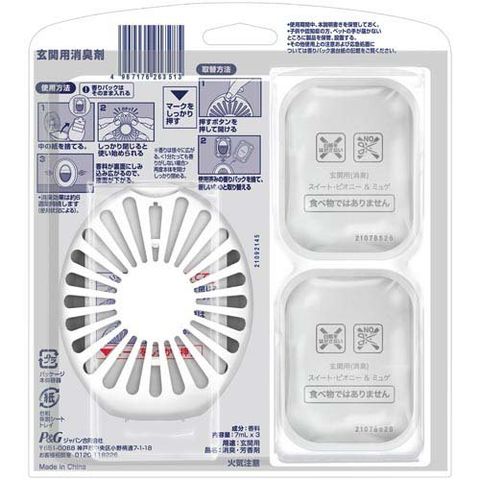 ・取替方法:押すボタンを押して開ける。使用済みの香りパックを捨て、新しいものと取り替える。