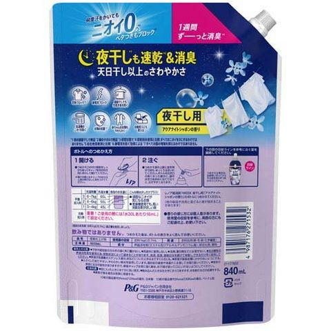 レノア 超消臭1WEEK 柔軟剤 夜干し用 アクアナイトシャボン 詰め替え 特大 (840ml)
