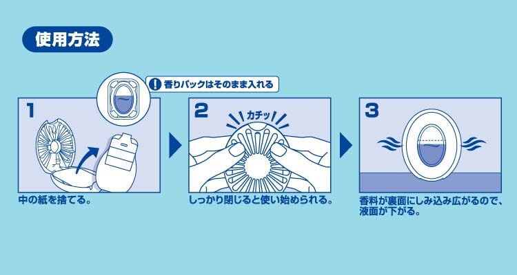 ・つめかえる際は、香りパックの端を持つなどして香料が皮膚に付着しないようにする。