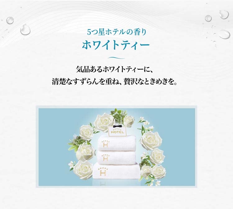 ●ホワイトティーの香り:気品あるホワイトティーに、清楚なすずらんを重ね、贅沢なときめきを。