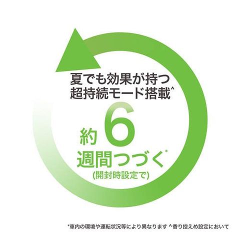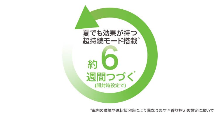 ●使用期間: 約6週間(開封時設定での試験時の状況に基づく。車内の環境や運転状況等により異なります。)