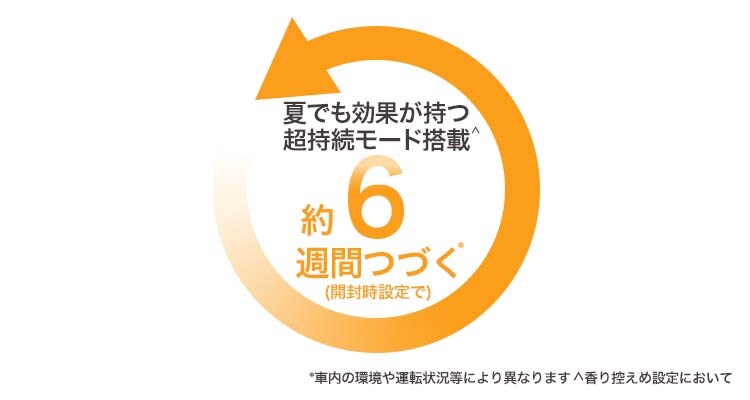 ●使用期間:約6週間(開封時設定での試験時の状況に基づく。車内の環境や運転状況等により異なります。)