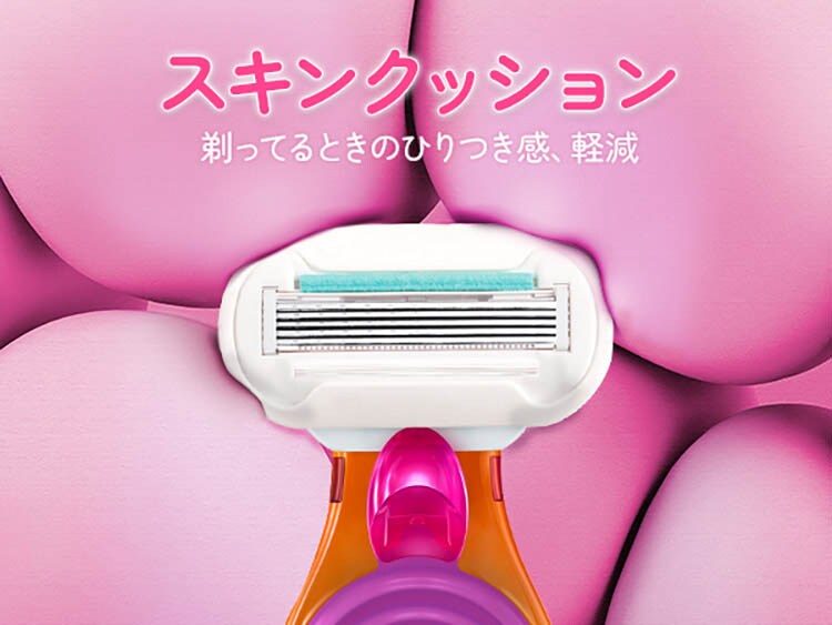 ●密着シェービングスキンクッション:剃ってるときのひりつき感、軽減クッションが肌への刃の圧を抑える。