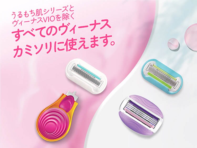 ●ヴィーナスの替刃は、ヴィーナスVIOを除くヴィーナスのハンドルに使用できます。