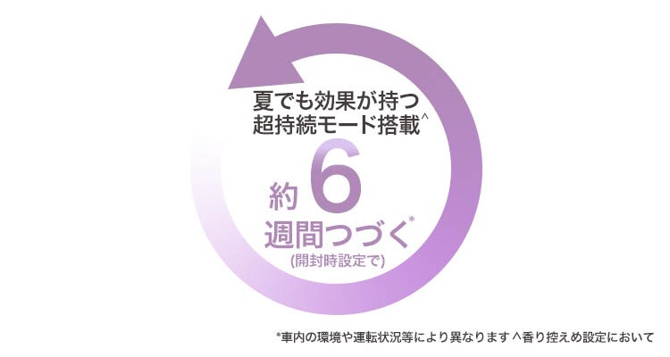 ●使用期間: 約6週間(開封時設定での試験時の状況に基づく。車内の環境や運転状況等により異なります。)