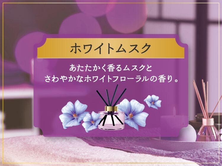 ●ホワイトムスク:あたたかく香るムスクとさわやかなホワイトフローラルの香り。